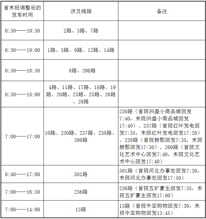 (一)2月15日、16日(三十、初一)首班延后發(fā)車、末班提前收車,具體明細見下表: